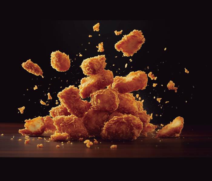 未来の揚げ物を実現するテクノロジー熱伝達を向上させるテクノロジーで、細分化された油が食材を密着コーディング